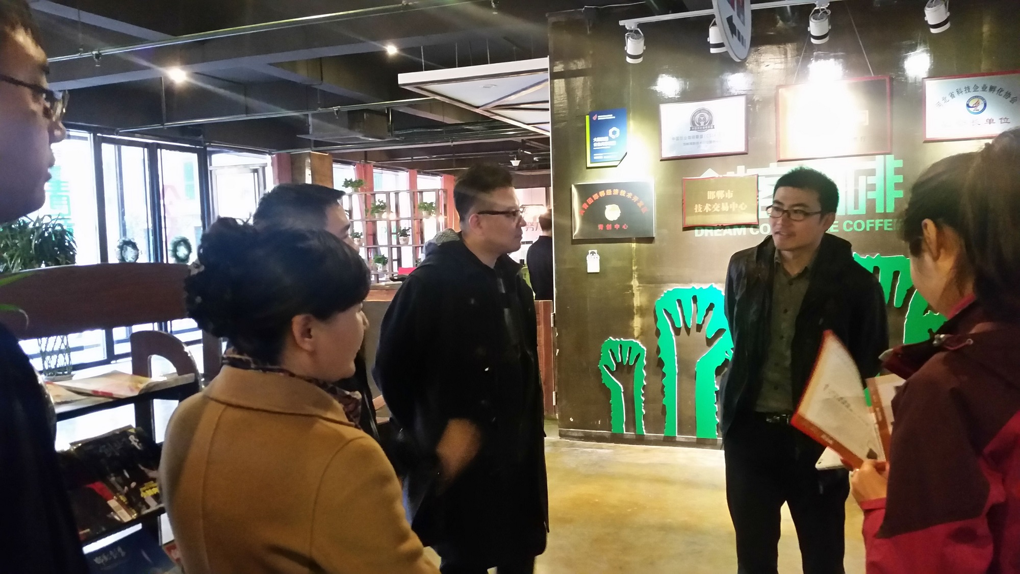2016年2月29日,唐山市高新技術創業服務中心副主任許英華帶隊到邯鄲高科園區進行參觀學習,先后參觀了河北華厚天成環保技術有限公司、河北云端電子設備有限公司、DCT創客空間就產業項目發展建設進行實地參觀學習,邯鄲高新技術創業服務中心副主任杜劍峰、邯鄲高科副總經理李青陪同參觀。