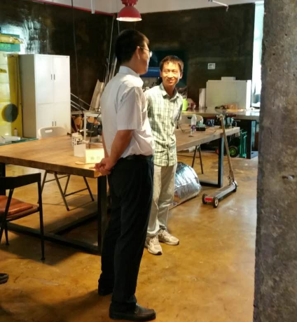 接下來參觀了“90后創客劉詠名”自主研發的極簡電動滑板車,劉詠名向喬主任介紹了產品的優勢并正在積極申請專利,同時表示自己在DCT創客空間內,享受到了很全面的孵化服務,并對未來的發展非常憧憬。喬主任表示非常欣慰,同時也提出了中肯的意見,希望劉詠名可以再接再厲,創造更高的輝煌。